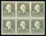 1935. 20 øre grå i 6-blok med papirfold foroven, marginal dog klæbet til mærket.