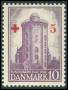 1944. Røde Kors med variant: Lavt overtryk i lodret 3-stribe.