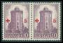 1944. Røde Kors i par med variant: Lavt overtryk. AFA 800,-