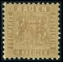 BADEN. 1862. 9 kr. brun, Våbenskjold glag baggrund. Begge nuancer., AFA 880,-