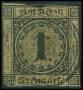 BADEN. 1852. 6 kr. sort, grønlig papir. Sign. BPP. Mi. (3b) 60 €