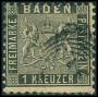 BADEN. 1862. 1 kr. sort, Våbenskjold, tk 10. AFA 900,-
