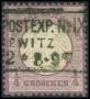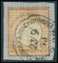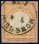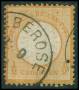 1872. ½ gr. orangegul, Stort brystskjold. Med variant: brudt "S" i groschen. Mi. 170,- €