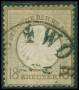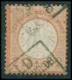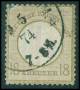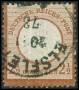 1872. 18 kr. gulbrun med hestesko stp. Sign. Saal. AFA 20900,-