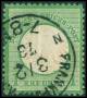 1872. 1 kr. grøn, Lille brystskjold. AFA 550,-