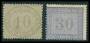 1872. 30 gr. blå, Taltype. Blækannulleret. AFA 5.950,-