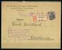 1915. 40 pf. på R-brev sendt til den norske creditbank i Kristiania, laksegl på bagsiden.