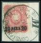 TYRKIET. 1884. 20 para rosa på klip. Sign. Kosack. AFA 750,-