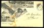 1903. 4 c. brun/blå halveret på lokal brugs tryksag på illustreret kuvert stp. St. Thomas 21.1.1903 (2. dagen), nogle tropiske pletter på kuverten.
