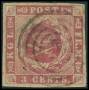 1856. 3 c. mørkkarmin, gul gummi. Sign. Osper BPP. AFA 3200,-