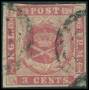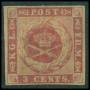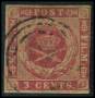 1856. 3 c. mørkkarmin brun lim tangeret.