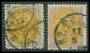 1873. 7 c. lilla/gul x 2 med småfejl. AFA 2200,-