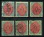 1873. 3 c. blå/rød x 6. AFA 2400,-