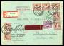 AM POST. 1945. 10 pf. brun x 7 og 12 pf. rødlilla på ekspres R-brev.