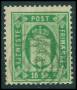 1875. Våben sæt med 32 øre gulgrøn samt 4 øre ultramarin. AFA 1305,-