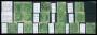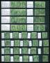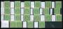1881. 32 øre gulgrøn tryk 3 x 16 pos. bestemte inkl. 1 med omv. vm. AFA 8200,-