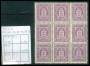 1920. 15 øre mærkere lilla tryk 2 pos. 81-82/91-92 i 4-blok, pos. 81 er hængslet resten er postfriske. AFA 2700,-