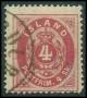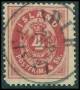 1873. Oval, 4 Skilling, rød. Annulleret med antikvastemplet MIK(LAHOLT). Decentreret som sædvanligt. AFA: 7500,-