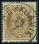 1875. 16 aur brun med variant: Hak i rammelinje NØ samt omv. vm.