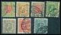 1907. 5 aur og 25 aur brun/grøn x 3 på klip med engelsk stp.