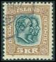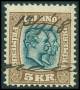 1907. 5 kr. brun/blågrå pos. 35 med varaint: Plet under sv-ornament. AFA 4000,-