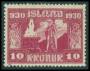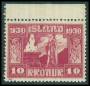 1930. Altingets 1000 års jubilæum. PRØVETRYK i KARMINRØD farve af alle 16 værdier i et ark. Glittet papir uden vandmærke, utakket og uden gummi. Fremstillet med de originale trykplader. Sjældent objek...