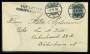 1898. 16 aur brun med variant og 20 aur blå på R-brev til USA, brev beklippet foroven. Attest Jørgensen.