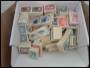 Æske fyldt med postfriske mærker i bundter med tilsyneladende forskellige mærker, må indeholde mange tusinde mærker.